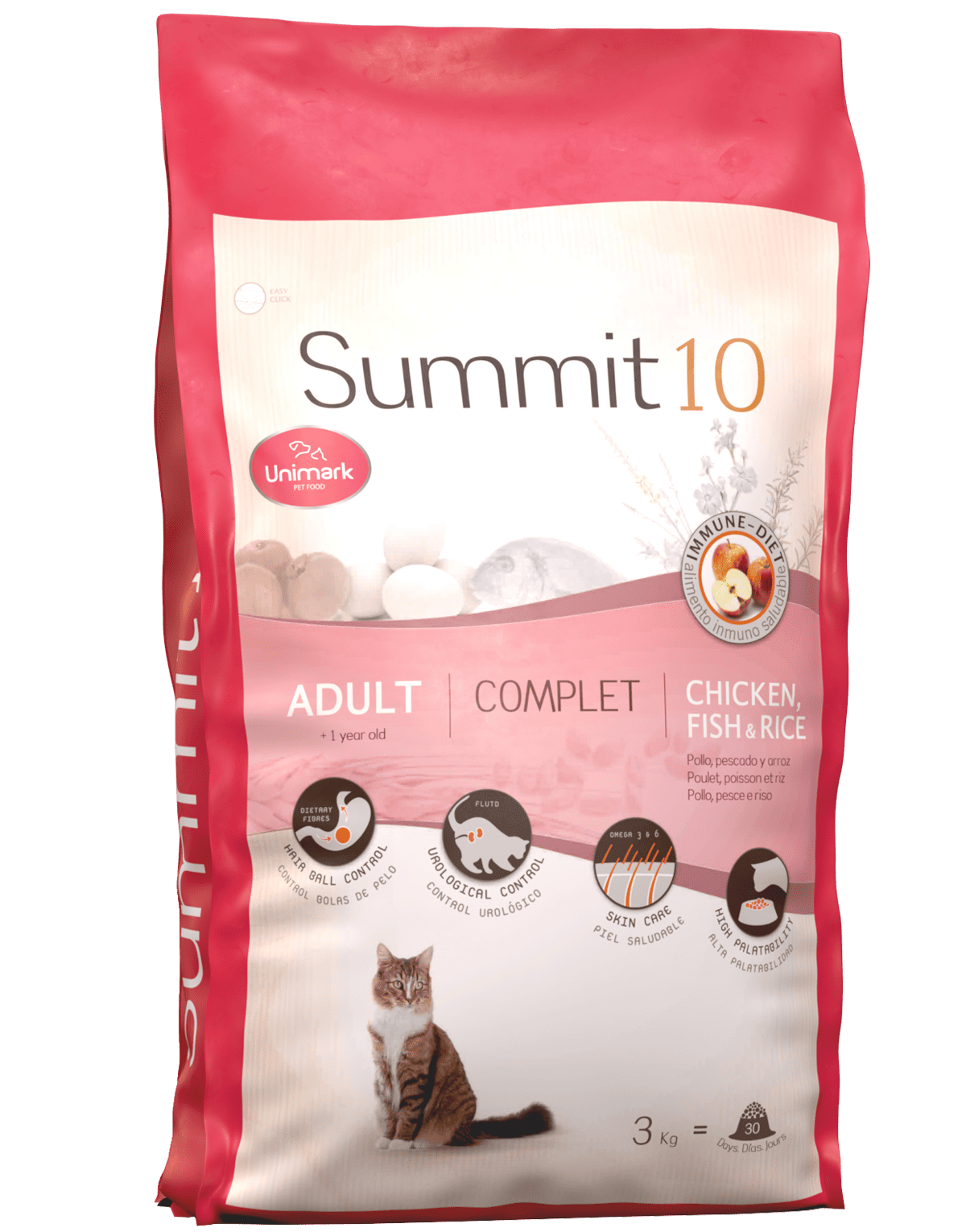 With chicken, fish and rice as main ingredients. A complete and balanced food for adult cats of any size at any stage of life. Special “Hairball Control” formula. Starting at 1 year of age.