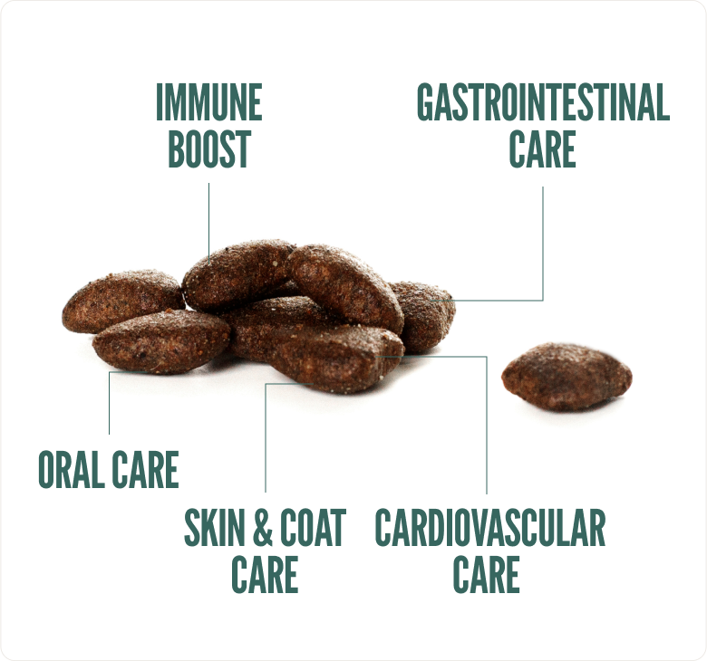 YUCCA SCHIDIGERA: Also known as Mojave yucca, it has a high content of saponins and polyphenols, which give it antimicrobial, antioxidant, and anti-inflammatory properties. Moreover, its saponin content helps improve digestion and reduce ammonia production, thereby reducing flatulence and bad stool odor.