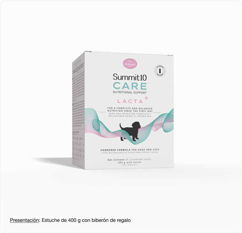 Cachorros y gatitos desde el nacimiento hasta el destete, cuando no disponen de la leche de su madre (animales huérfanos) o la leche de su madre es insuficiente o de mala calidad. Como complemento para hembras gestantes y lactantes, desde el décimo día antes del parto, hasta el destete, ofreciéndoles entre el 5 y el 10% de su peso en varias tomas diarias.