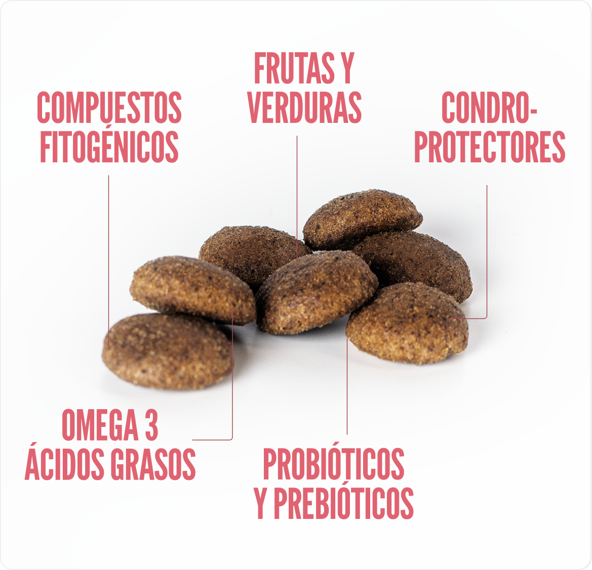 ACEITE DE SALMÓN: Una fuente concentrada de energía altamente palatable, que también proporciona ácidos grasos esenciales omega-3 (como EPA (ácido eicosapentaenoico) y DHA (ácido docosahexaenoico)), vitamina A y antioxidantes (astaxantina). El EPA ayuda a reducir la inflamación y mejora la salud cardiovascular. Y el DHA es crucial para la salud del cerebro, la función cognitiva y la salud ocular. Además, la vitamina D y los antioxidantes ayudan a fortalecer el sistema inmunológico.