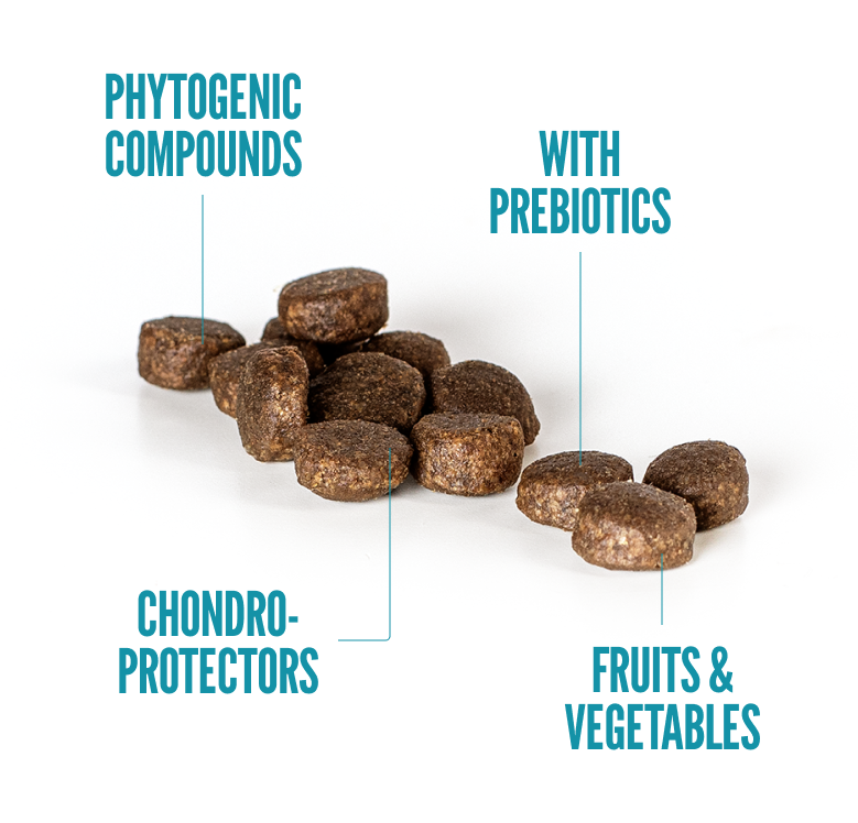 YEAST: A source of high-quality protein and excellent palatability. It is also particularly rich in B vitamins, minerals (selenium, zinc, magnesium, iron, and phosphorus), prebiotic compounds (mannan-oligosaccharides (MOS) and beta-glucans), and nucleotides. Overall, it contributes to improving the quality of the skin, hair, and nails (due to its content of biotin and other B vitamins), nervous system function (due to its content of B vitamins), immune function (due to its content of beta-glucans, zinc, selenium, and nucleotides), and to gastrointestinal health (thanks to its content of prebiotic fiber).